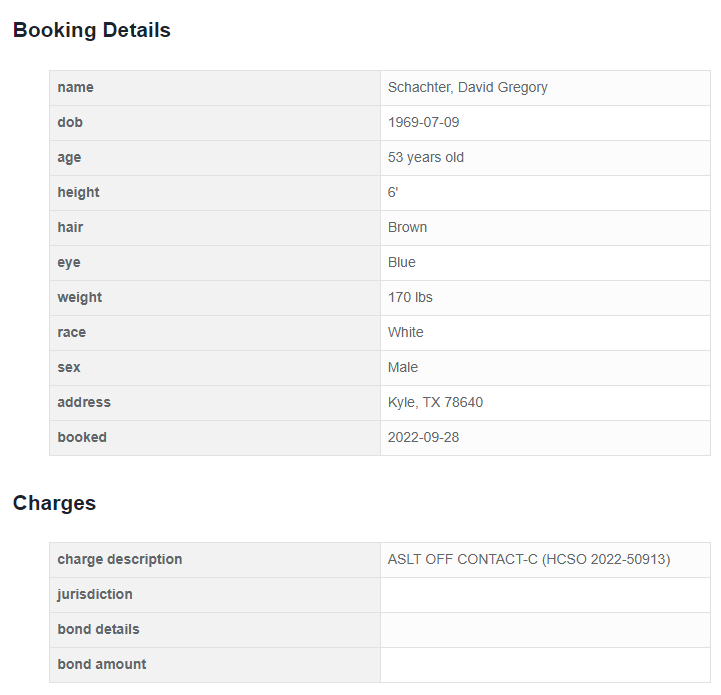 According to court documents, David Schachter, 53, was arrested and released from the Hays County jail on Wednesday. Schachter entered a not guilty plea on Wednesday after the case was filed.